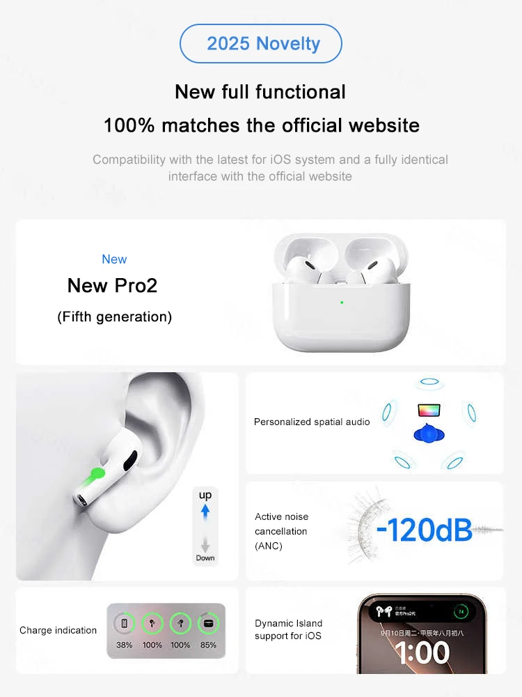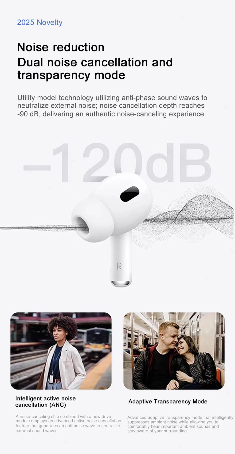 2Pcs For Pro 2 Air 4 Wireless Bluetooth Earphones TWS Earbuds Noise Cancelling Headset For iPhone Android Airpods ANC Headphones